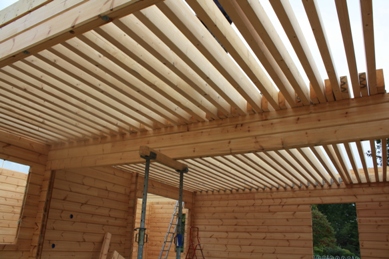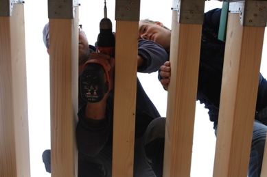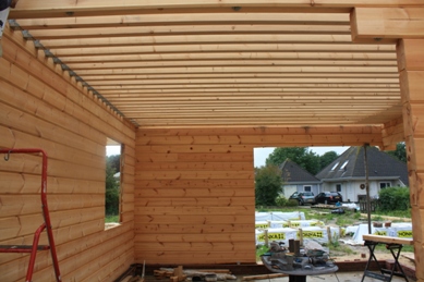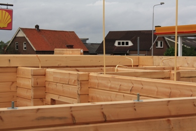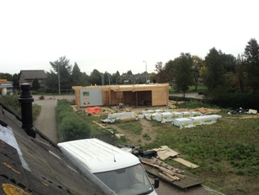 is met de verdiepingsvloer bezig. Kijk maar eens wat een balkenlaag! |